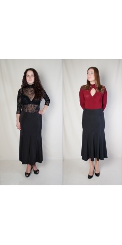 Отделка: на переднем полотнище юбки сложная кокетка с отстрочкой. Восемь клиньев годе.