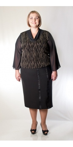 Отделка: На переднем полотнище юбки две дорожки из атласа (плиссе 0,5 см). Сзади - шлица.