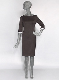 Платье выполнено в стиле MOSCINO, из мягкой формоустойчивой вискозной костюмной ткани. Отделка на спинке и манжеты из 100% индийского хлопка. Манжеты крепятся к низу рукава на внутренние пуговицы